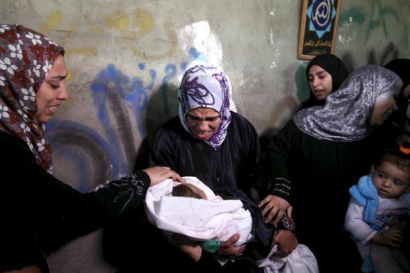 A little earlier, Israel just shelled Qdeih family’s house, killing another woman, Samaher Qdieh. Soon after that, Israeli warplanes shelled another house in Shaboura Refugee camp injuring 6 people, including 4 children. Israel has just bombed two houses in northern Gaza, killing two children: 1-year-old Gumana Abu Sufian and Tamer Abu Sufian. In the same attack, at least 13 got injured, mostly children and women.