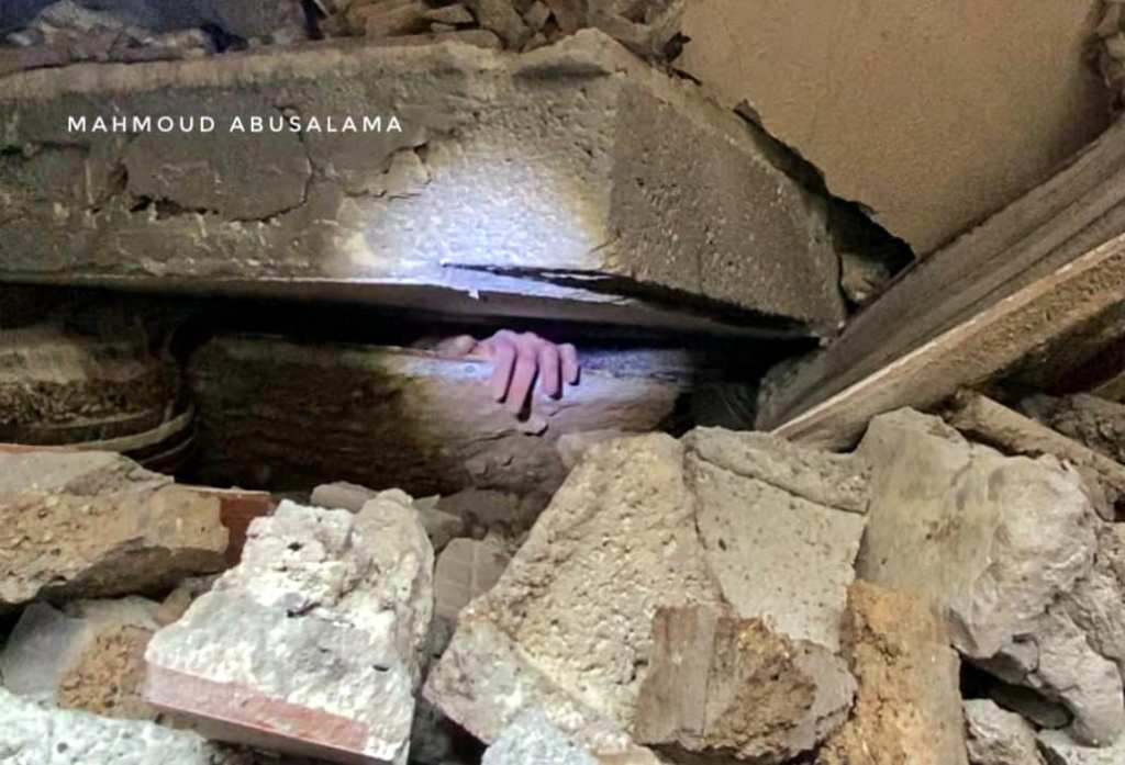 The lifeless bodies of his wife Heba (35) and children Leen (12), Jihad (10) and Sham (5) were pulled from under the rubble after six hours.