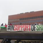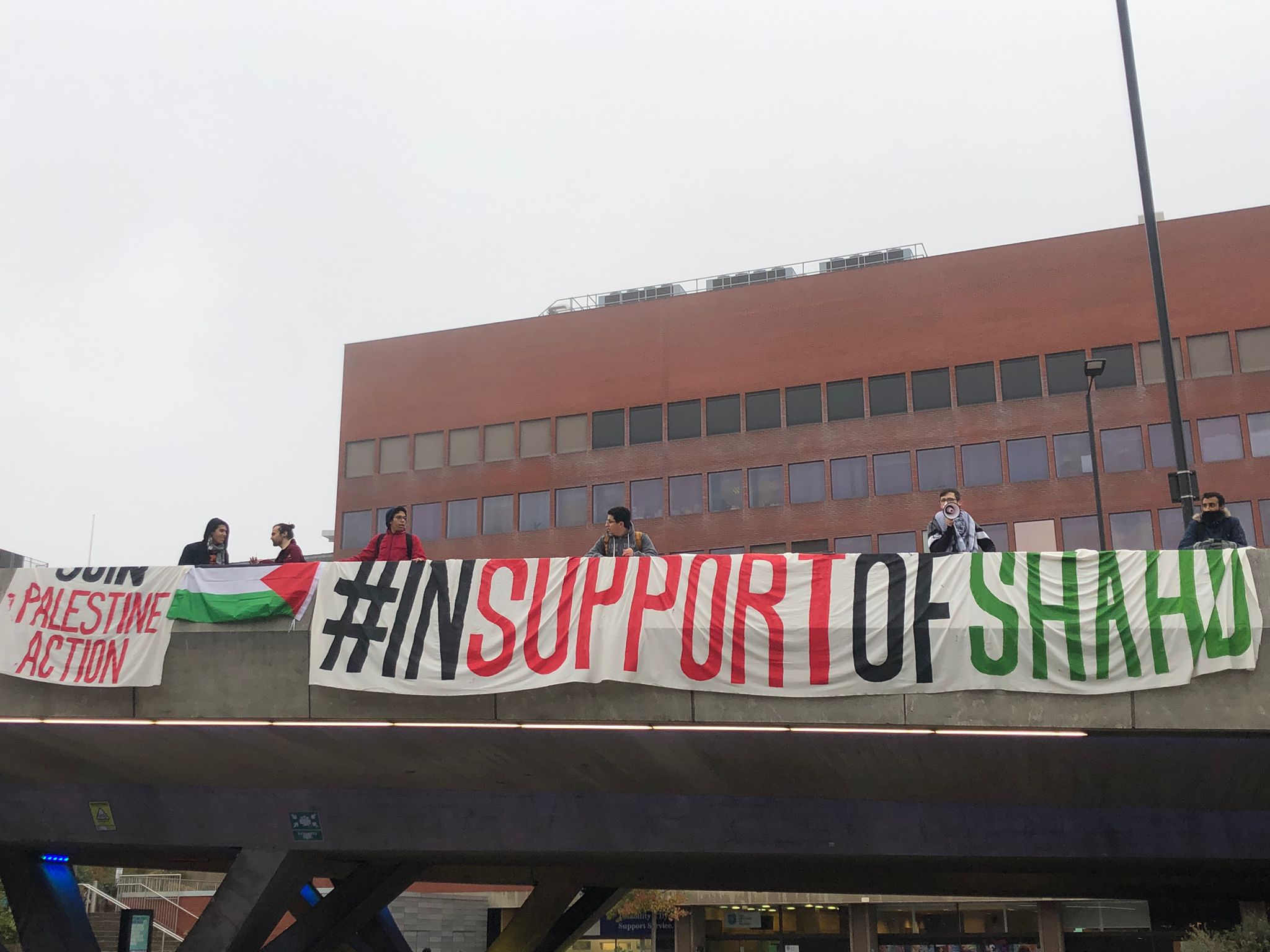 Banner in support of Shahd Abusalama at Sheffield Hallam University, 29.11.2022.